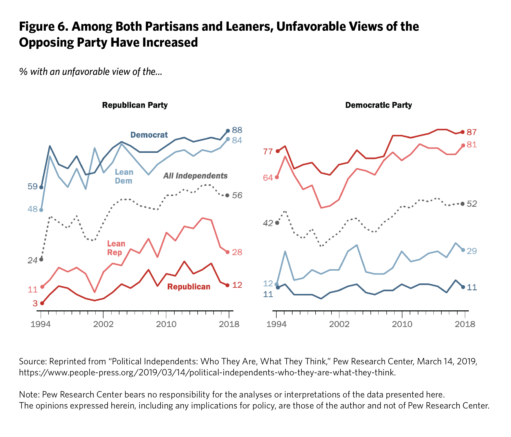 80 Iyengar, Sood, and Lelkes, “Affect, Not Ideology”; Liliana Mason, “I Disrespectfully Agree: The Differential Effects of Partisan Sorting on Social and Issue Polarization,” American Journal of Political Science 59 (March 2014): https://onlinelibrary.wiley.com/doi/10.1111/ajps.12089; and Lilliana Mason, “Ideologues Without Issues: The Polarizing Consequences of Ideological Identities,” Public Opinion Quarterly 82, no. S1 (2018): 866–887, https://academic.oup.com/poq/article/82/S1/866/4951269.